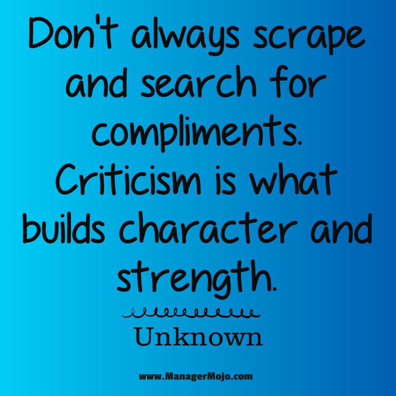 Don’t always scrape and search for compliments. Criticism is what builds character and strength. Unknown