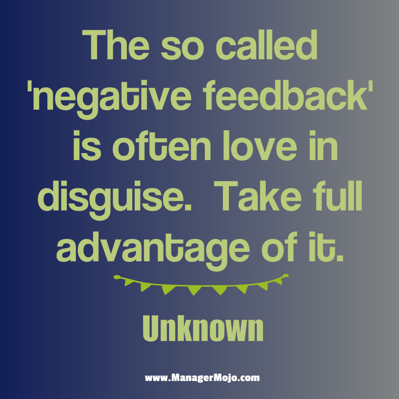 Love in Disguise by Manager Mojo | Oct 18, 2016 | Uncategorized | 0 comments The so called ‘negative feedback’ is often love in disguise. Take full advantage of it. Unknown