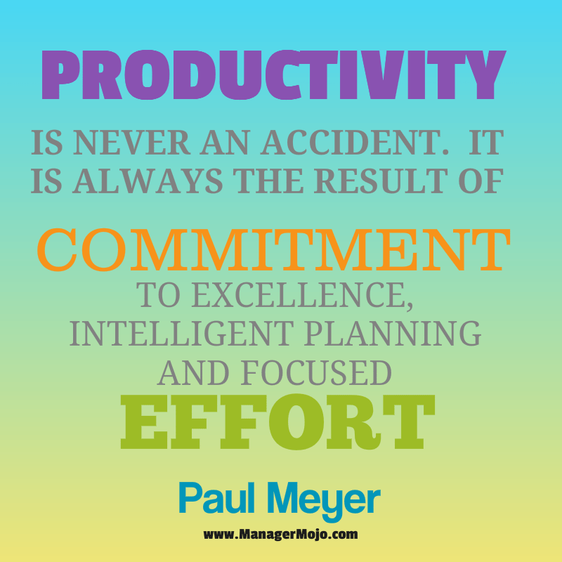 Productivity is never an accident. It is always the result of commitment to excellence, intelligent planning and focused effort. Paul Meyer